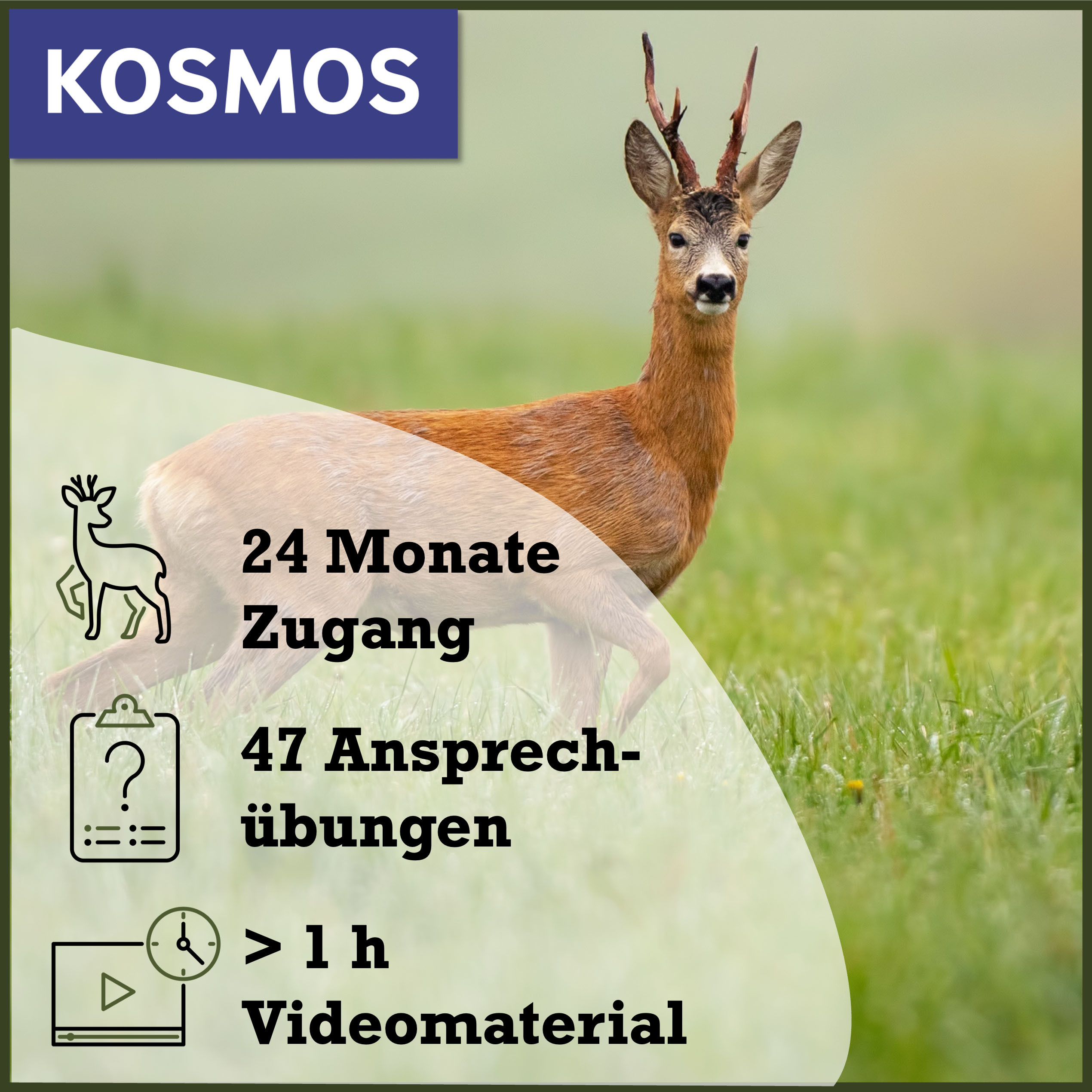 ✅ In einem umfangreichen Übungsteil kann dann das Erlernte überprüft werden: Dazu sprichst du zunächst eines der knapp 50 Stücke Rehwild auf einem Foto oder Video selbst an und überprüfst anschließend dein Ansprechergebnis anhand der Erläuterungen des Ansprechexperten.